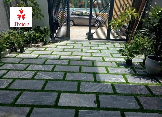- Lối đi sân vườn, resort, khách sạn: Khi vỉa hè liền với cảnh quan xanh, đá lát vỉa hè giúp đồng bộ cảnh quan sân vườn.